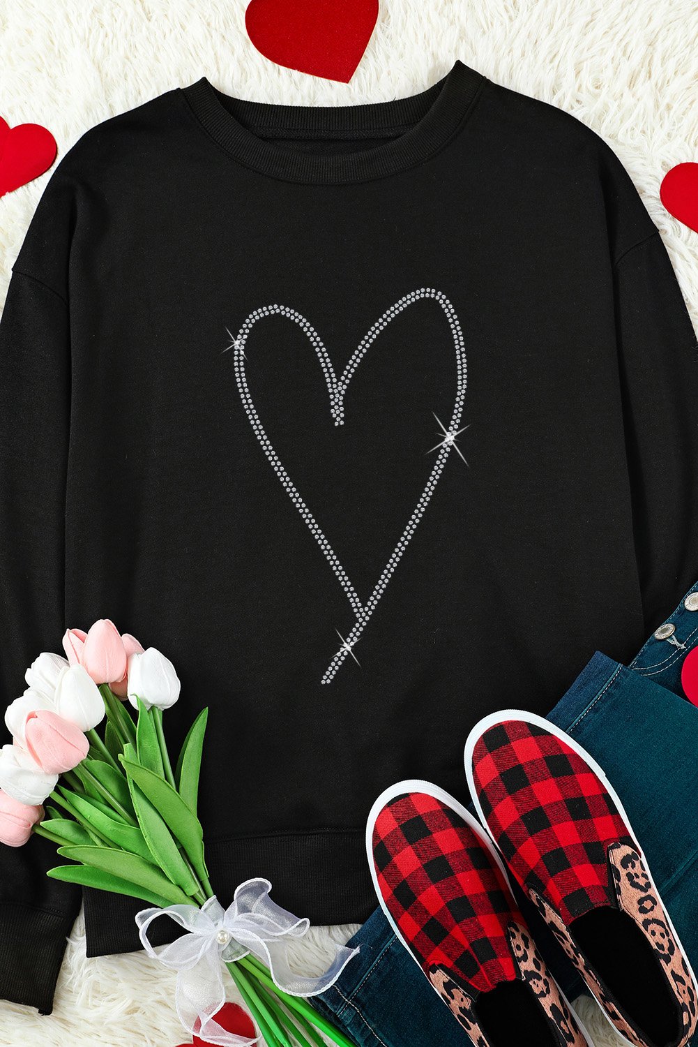 - Rhinestone heart pattern adds a sparkling touch of romance to this sweatshirt.