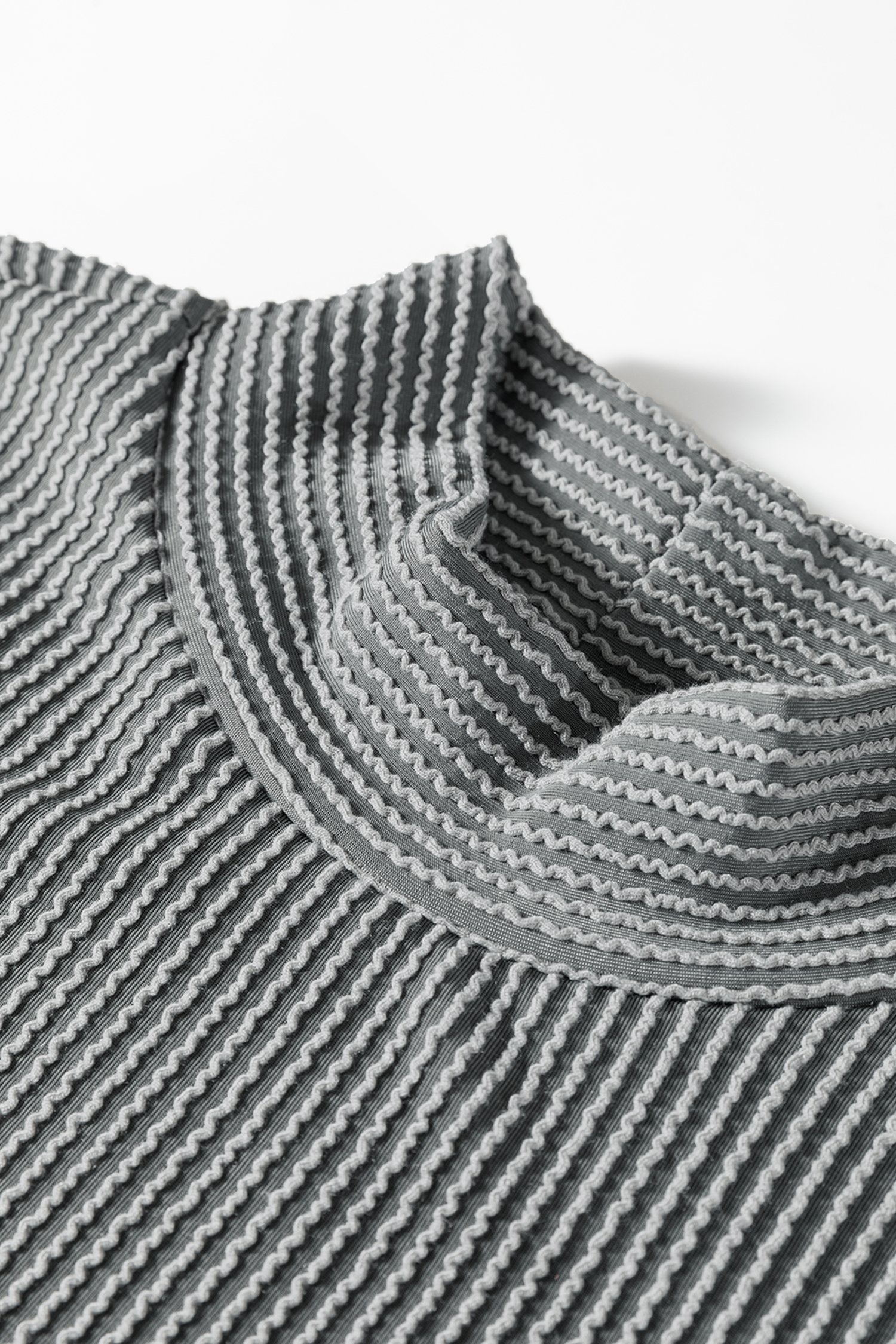 Mock neck short sleeve tee in a loose fit design while the casual pants draped naturally.